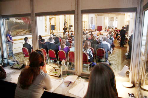 В синхронном переводе, переводчик переводит в то время, как говорит оратор. Поэтому эта форма перевода подходит для больших или небольших собраний, когда ораторы не могут постоянно прерывать свою речь, чтобы переводчик мог перевести. Такими является большинство собраний с заранее приготовленным выступлением. Если сеанс синхронного перевода длится более часа, команда переводчиков должна состоять, по крайней мере, из двух человек, работающих в одной кабине. Основная функция кабины - изолировать переводчиков от шума в конференц-зале, чтобы они могли сосредоточиться на тексте оратора, который они слышат через наушники. Оба переводчика следят за речью говорящего через свои наушники. Каждый переводчик переводит течение десяти-пятнадцати минут с помощью микрофонной системы и передает очередь партнеру, как только чувствует усталость. Работа требует такой концентрации и усилий, что чередование является необходимым условием. Специалисты:Профессиональные переводчики являются высококвалифицированными людьми . Успех вашей конференции или встречи зависит от их языковой и профессиональной компетентности . Профессиональные переводчики (также называемые синхронными переводчиками) всегда переводят на их родной язык, который так же называется языком А. Крайне редко переводчик владеет двумя языками A . Таким образом, если конференция должна быть переведена на два языка одновременно, например на французский и английский языки , Вам будет необходимо работать с двумя специалистами, каждый из них будет переводить на их родной язык или язык А. Конечно, переводчики могут работать в противоположном направлении, то есть переводить с языка А на язык Б. Этот вариант является оптимальным, когда лишь несколько человек нуждаются в переводе на язык Б, а так же, когда им немного знаком язык докладчиков конференции. Однако следует отметить, что в синхронном переводе наблюдается заметное различие между родным языком переводчика в (А) и языком Б . Звуковое оборудование:Звуковое оборудование - очень важный аспект конференций с синхронным переводом. Речь основных докладчиков должна транслироваться в кабины, в которых работают два переводчика. Они слушают речь оратора в наушниках и переводят ее в микрофон. Их перевод осуществляется по беспроводной передаче в наушниках присутствующих , которым адресован переводимый текст . Этот процесс требует специального оборудования : микрофоны, громкоговорители , кабина, наушники, инфракрасный передачи , и т.д., и главное, присутствовие квалифицированного на протяжении всей конференции специалиста по технике. Мы не предоставляем эту услугу напрямую, но мы можем взять на себя её организацию . Мы сотрудничаем с лучшими специалистами в этой области, мы гарантируем качество оборудования и его надлежащее функционирование. Квалифицированный специалист будет присутствовать на протяжении всей конференции, он гарантирует отсутствие технических неполадок и заминок . Перевод кабины устанавливается за день до конференции или в начале дня конференции . Оборудование заранее проверяется .Оборудование пересчитывается до и после конференции. Специальное оборудование для коротких конференций:Специальный тихий перевод. Для конференций которые дляться не больше часа и которые, следовательно, могут быть переведены одним 